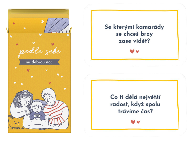 - Balíček na dobrou noc pak zpomalí den, pomůže se společně ohlédnout a sdílet to důležité – než se ponoříte do klidného spánku.